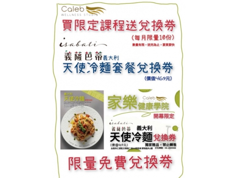 這個夏天,Caleb Wellness Studio 為大家帶來健康與美味的雙重享受!即日起,只要報名指定課程,就能免費獲得「義薩芭蒂 義大利天使冷麵套餐兌換券」(市價 NT$469),每月限量 10 份,送完為止! 這道來自奇美博物館的天使冷麵...
